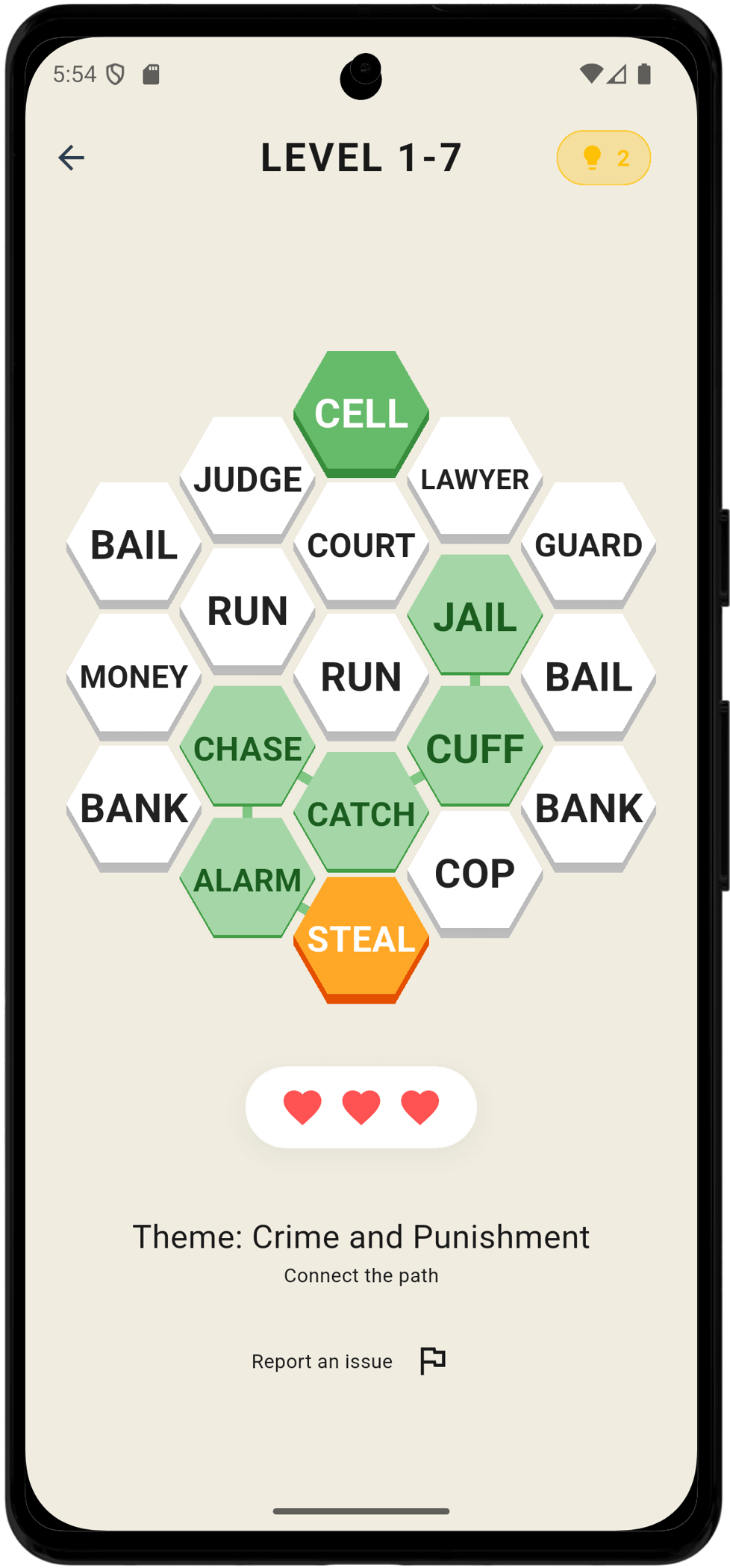 Path your way through the honeycomb. Connect adjacent words clear tiles, and maximize your score. Strategy meets vocabulary in this addictive daily puzzle.